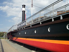 In Magdeburg sind zwei Museums-Schiffe zu besichtigen. Zum Einen finden Sie im Stadtpark (Heinrich-Heine-Platz) die "Württemberg". Es handelt sich dabei um einen historischen Seitenradschlepper - bis in die 1960er Jahre hinein wurden die Lastkähne nicht wie heute geschoben, sondern gezogen. Bis zu 10 Kähne ließen sich an einen Seitenradschlepper anhängen und die Flüsse stromaufwärts oder stromabwärts ziehen. Die "Württemberg" wurde 1909 in Roßlau gebaut und erst 1974 außer Dienst gestellt. Sie war der letzte Seitenradschlepper, der in Deutschland noch Dienst getan hat. Im Bug des Schiffes befindet sich heute ein Schifffahrts-Museum, im Heck-Bereich eine Gaststätte. Die Gaststätte ist telefonisch erreichbar unter 0391 / 56 28 992 .